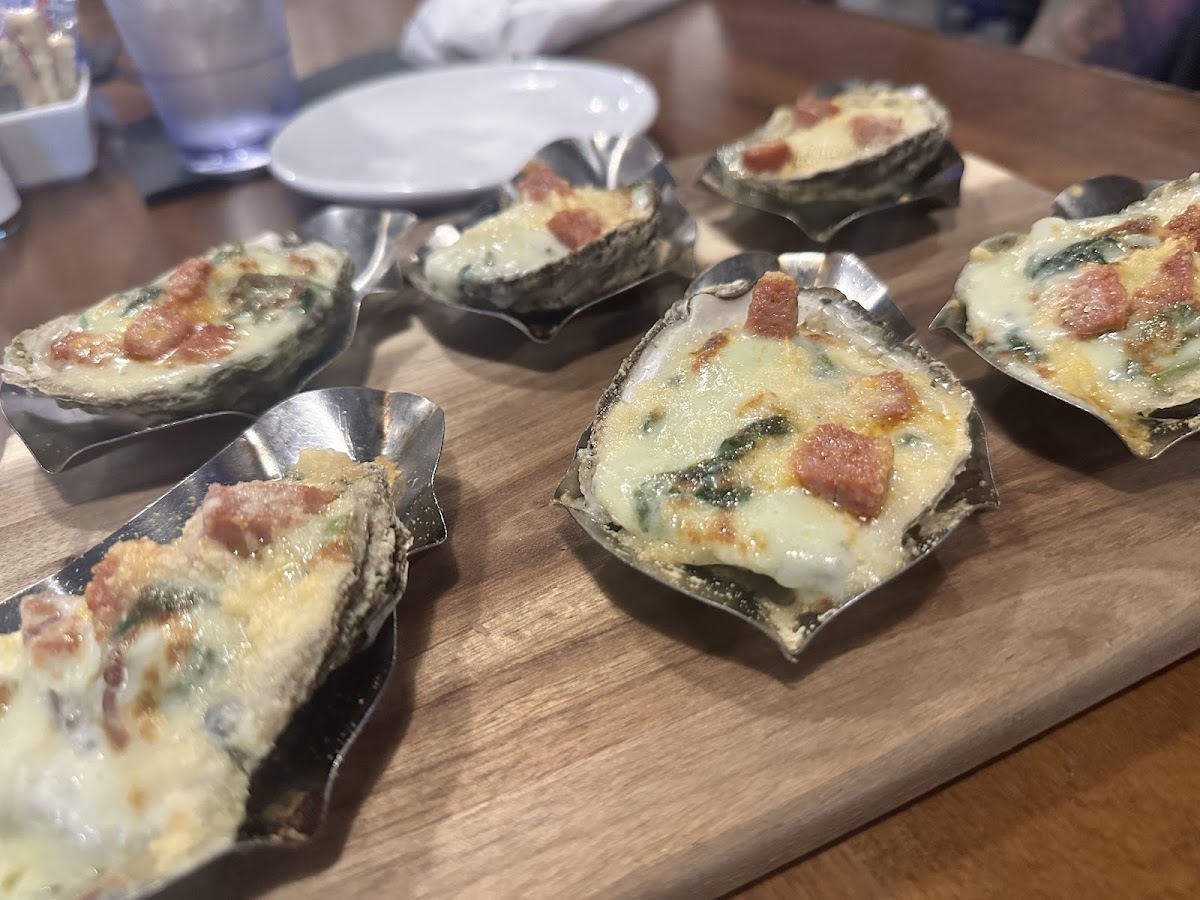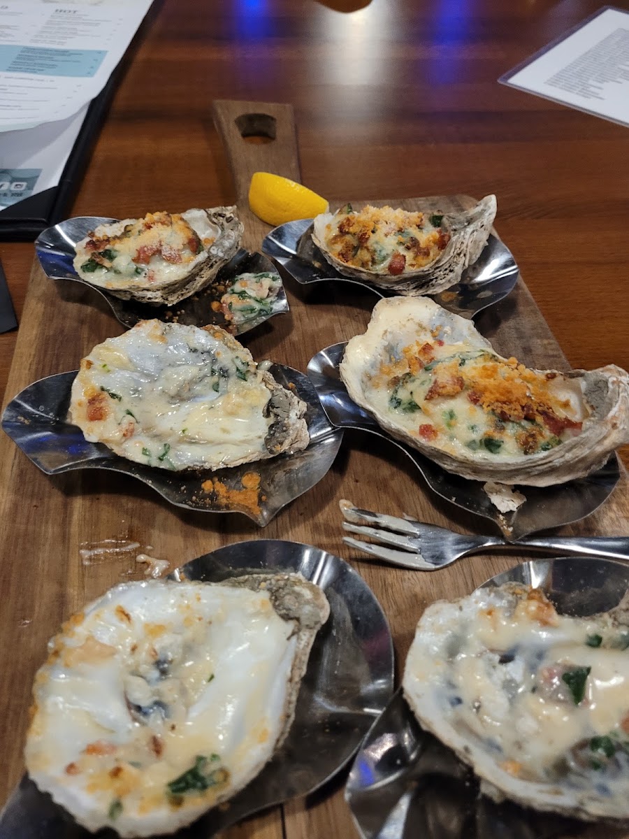 "Carly" (hopefully spelled her name correctly) was soooo sweet and got EVERYTHING we requested. She was attentive, kind, and communicated through our visit. Maybe management/ possible Owner came and spoke to us too. I liked that the Management, Server Assistants, and all staff were equally as hands on. You don't see that everywhere and I appreciated the work ethic and positive attitudes. The food was BOMB, like nothing was "just okay". So good, we didn't have a chance to take pictures lol. The presentations were beautiful also. House Oysters were large and tasty and priced well! The Sweet Sriracha Oysters were something new we hadn't seen before anywhere and were the collective fave. (We had to order a second one) Shrimp Cocktail, Scallops, Crabcake, Crab Dip, Salmon, and Pizzas were great as well. I don't live on this side of town, buuut I'll be back soon! Also Hostesses were on point too! We called ahead to place a to go order, BUT raw seafood is a no go so after ensuring they were family friendly, which was a yes, we went in! Thanks everybody!!!